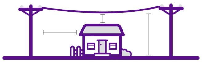 The minimum distance between a structure and an overhead line varies depending on the voltage the line is carrying.